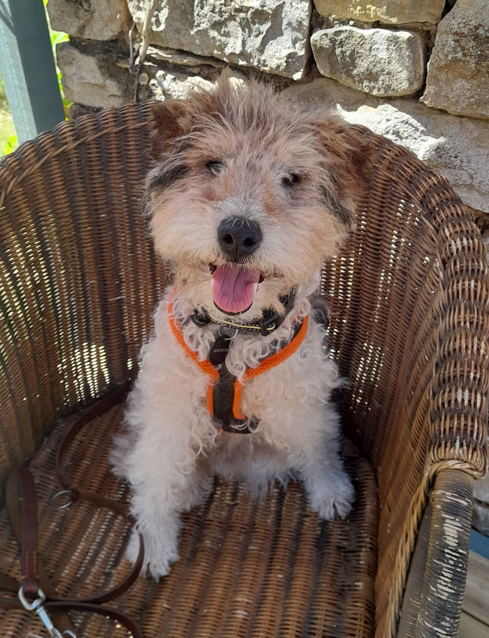 Mabel came to us via Les Amis Des Animaux she was taken off the streets to the refuge at Tarbes. We don’t know her past history apart from having a Portuguese micro chip and being 11 years old. She arrived very thin and with a bad skin condition but is now on the road to recovery where she has fitted in as if she has been with us forever. Enjoying life in the barn with our other dogs, having good food, comfy settees (she is afer all a Pointer) and a fuss by the team and volunteers.